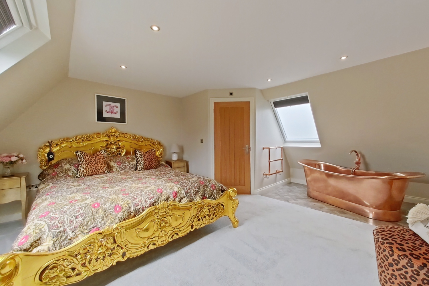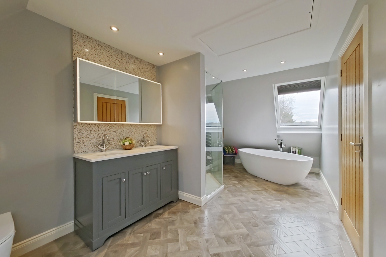 £480,000A rare opportunity to acquire a superbly renovated property finished to an exceptionally high standard, enjoying spectacular far-reaching countryside views to the rear. Properties of this calibre, combining such high-quality finish with outstanding views, seldom come to the market. Situated in a quiet cul-de-sac within a highly sought-after location, the property offers both privacy and convenience. The ground floor features a spacious entrance hall leading into a large open-plan lounge, dining area, and kitchen. This impressive living space is enhanced by large sliding doors that open directly onto the patio, creating a seamless indoor-outdoor flow. There is also a second reception room, which offers flexibility as a third bedroom if desired, along with a stylish and generously sized modern shower room. In addition, the property benefits from a substantial double garage incorporating a utility room and a spacious office area. Upstairs, the first floor landing provides access to two large bedrooms. The master bedroom boasts a luxurious en suite complete with a freestanding bath, separate shower cubicle, and twin wash basins, as well as a private balcony perfectly positioned to take in the stunning views. The second bedroom also features a freestanding bath within the room and its own en suite with WC and wash basin. Externally, the property offers a large, enclosed rear garden, mainly laid to lawn, with a patio area ideal for entertaining while enjoying the surrounding countryside views. To the front, there is a further enclosed lawned garden and a double-width driveway leading to the double garage. Viewing is an absolute must.