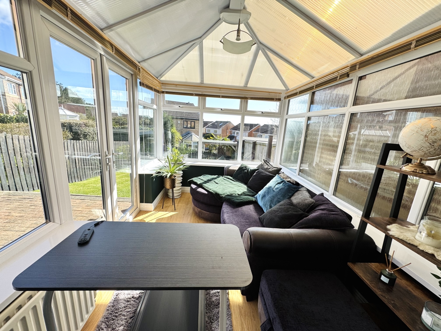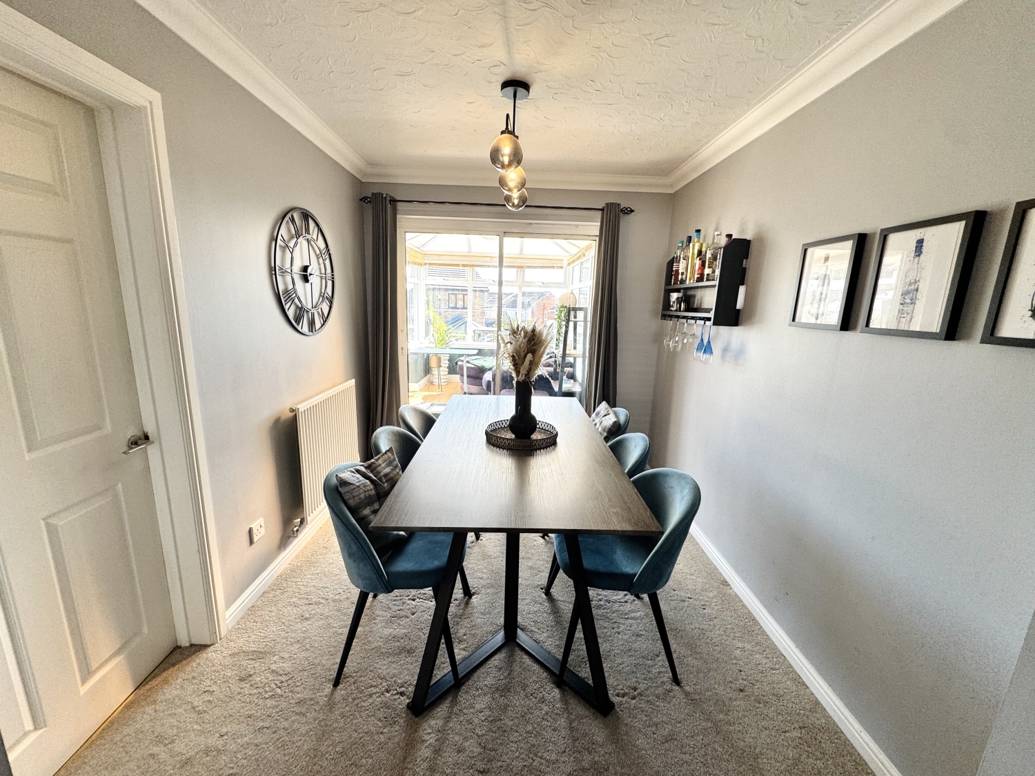 Sliding doors into the conservatory, radiator