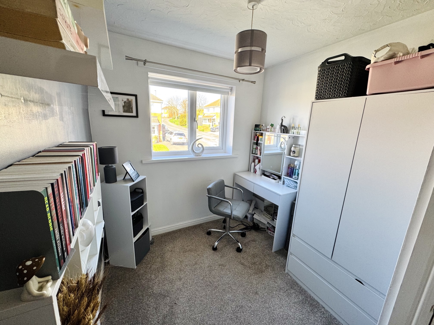 Double glazed window to the side elevation, storage cupboard