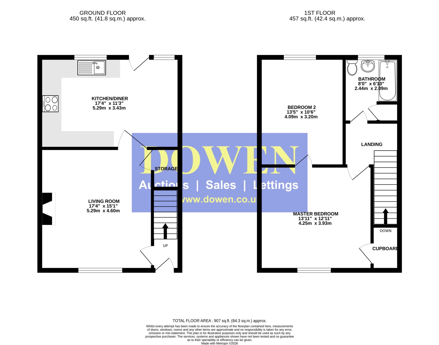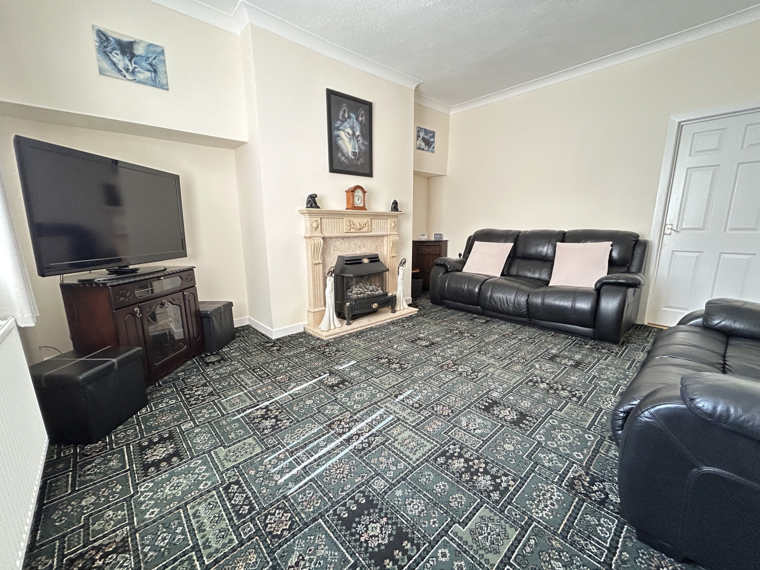 The property offer superb room sized with an entrance hall leading into a well proportioned lounge with feature fire place, and a modern refitted kitchen breakfast room situated to the rear of the property. To the first floor, the landing area gives access to a large master bedroom with built in storage cupboard and a second double bedroom as well as a modern refitted family bathroom/wc with shower over bath.