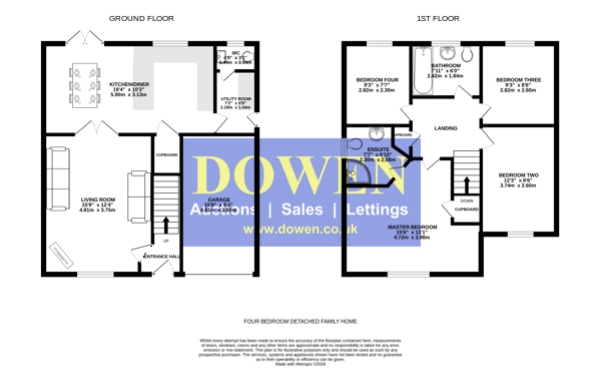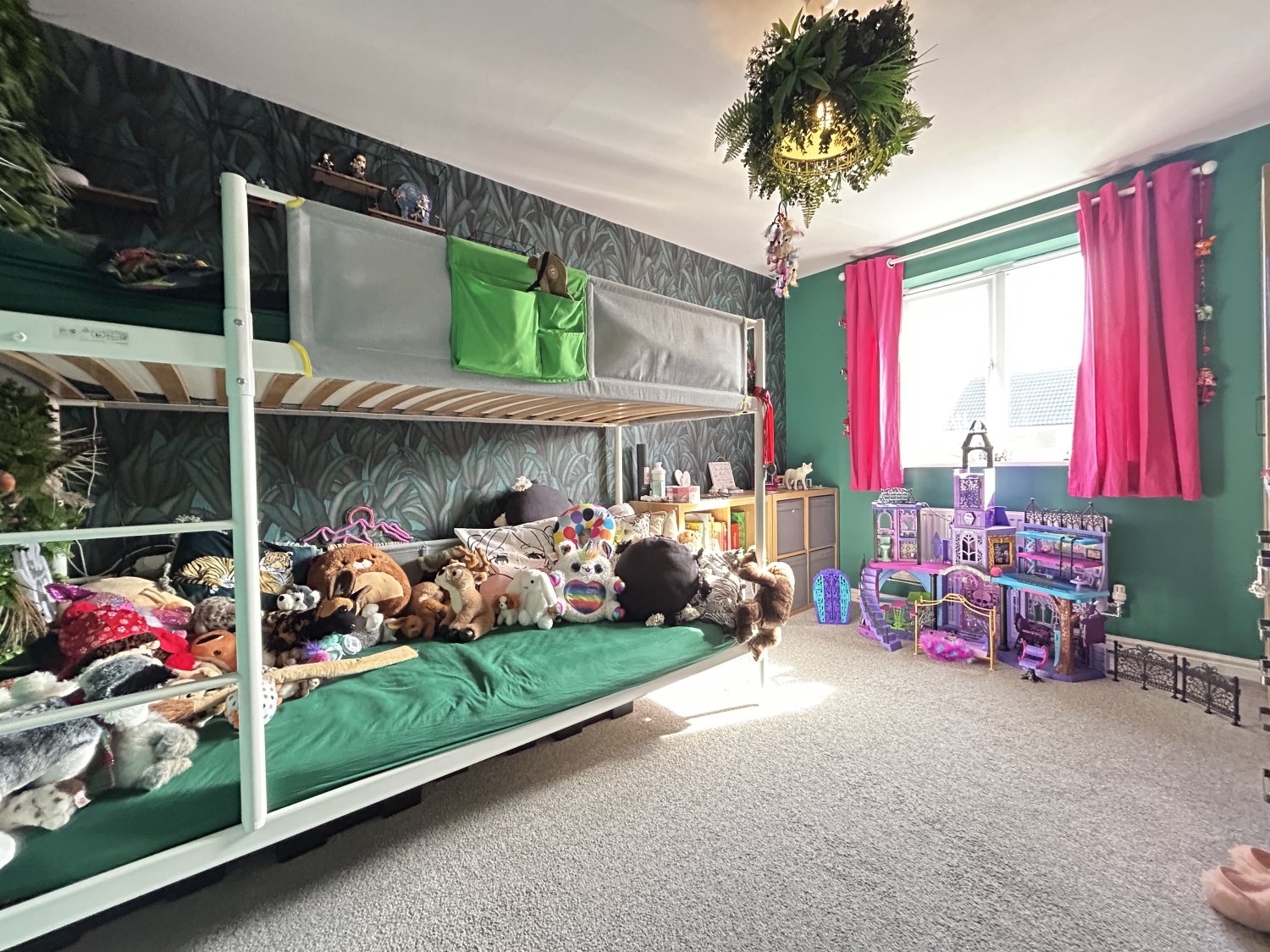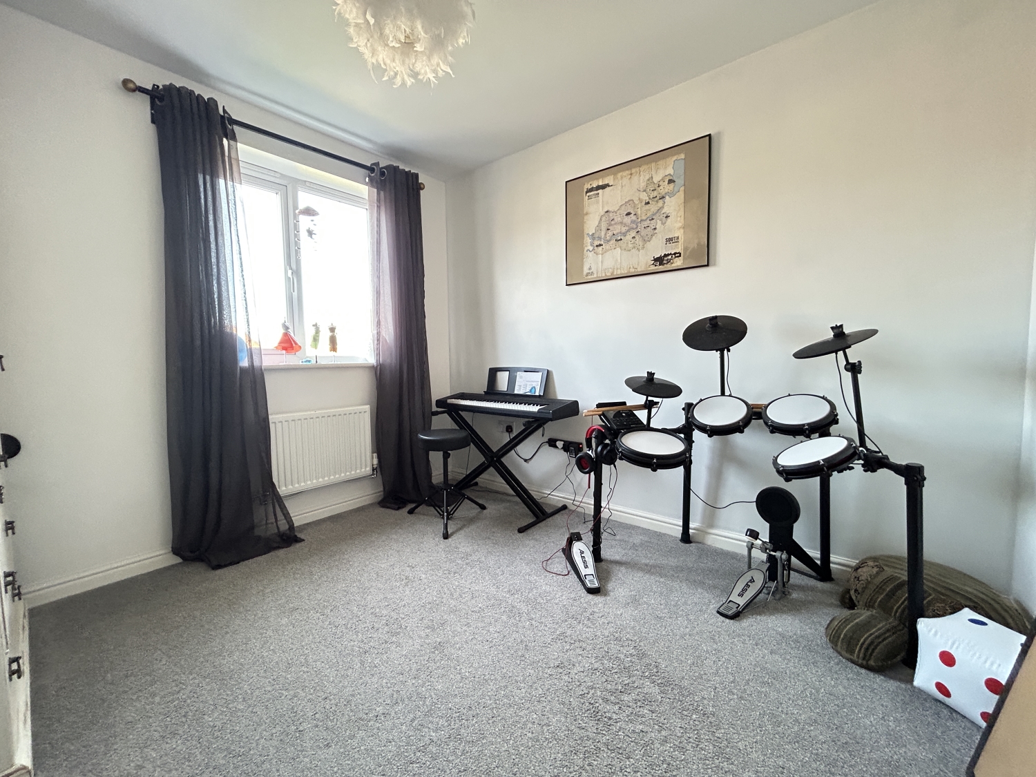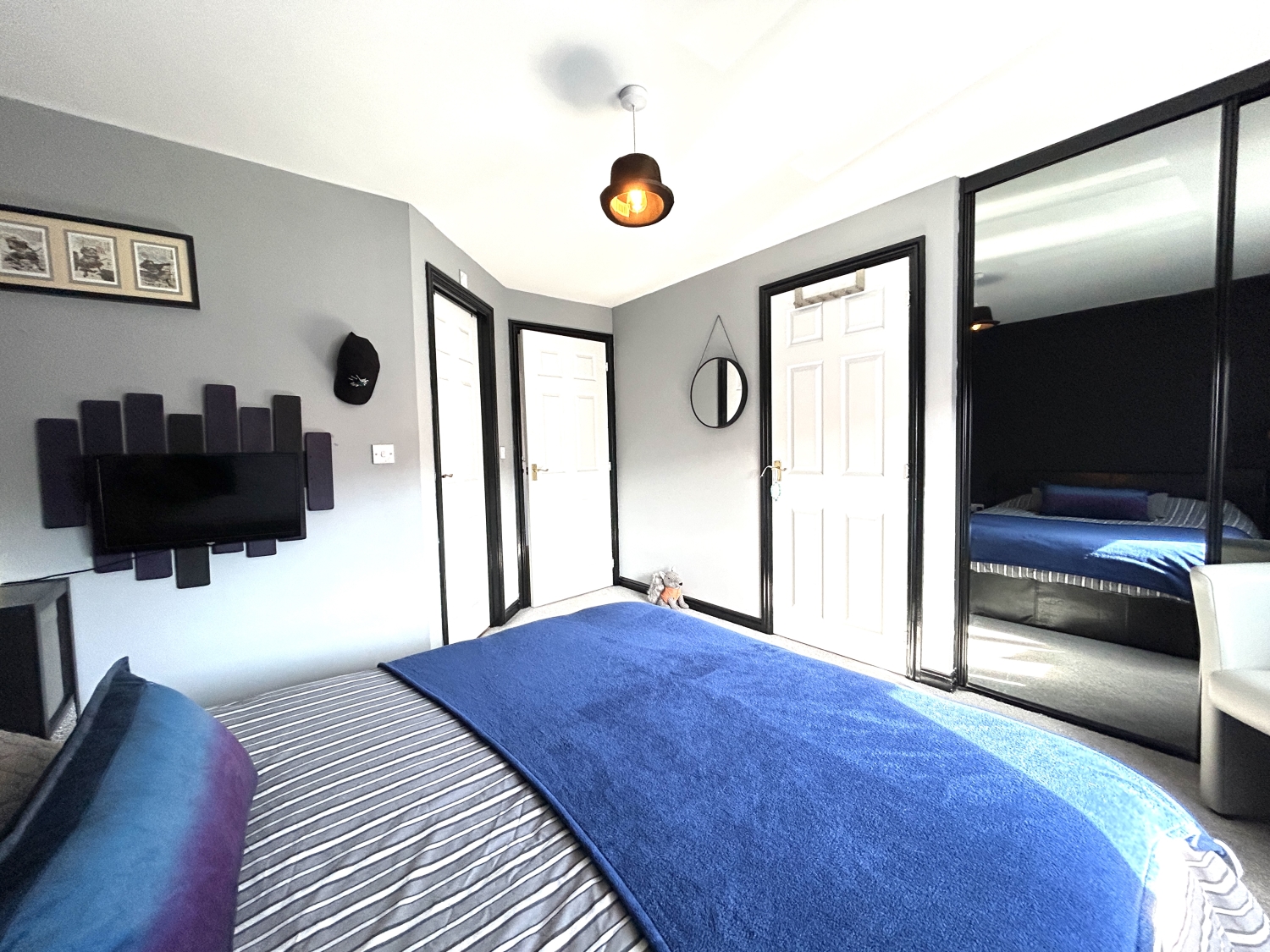 To the first floor, the master bedroom is generously proportioned and benefits from built-in storage and a private en-suite shower room. Three further well-sized bedrooms offer flexible accommodation for children, guests or home working and are all served by a modern family bathroom.