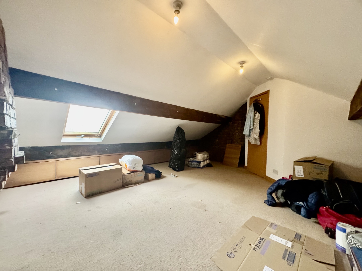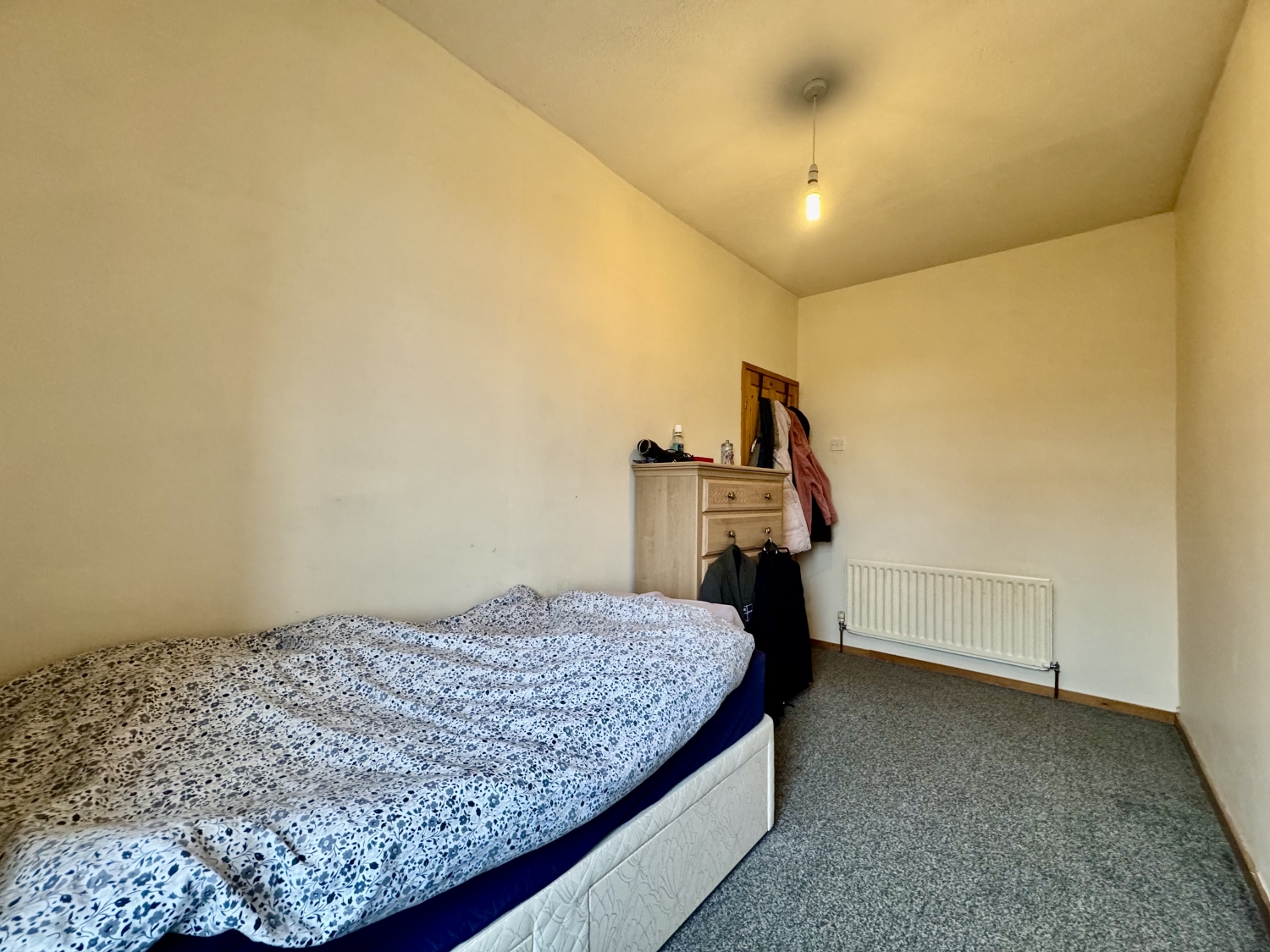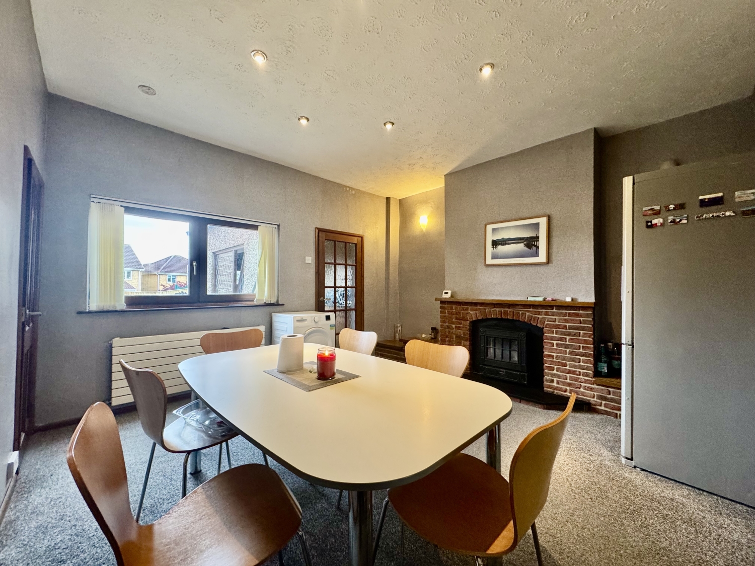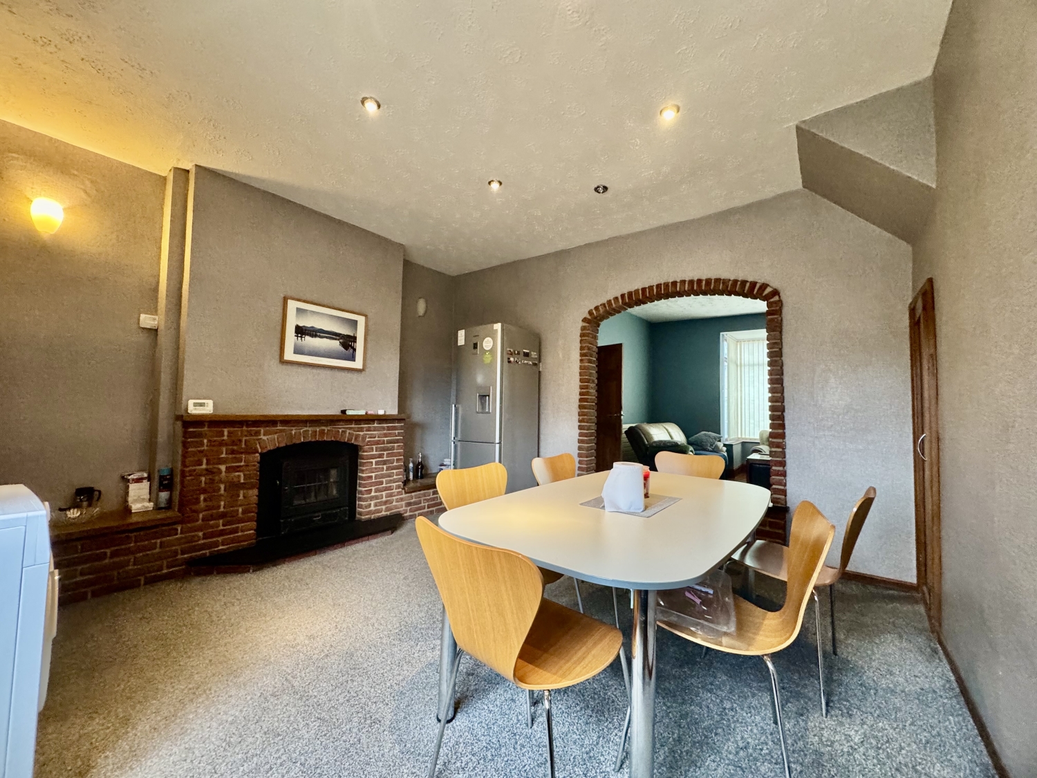 Double glazed window, radiator, opening through to the living room, door leading through to stairs, fire place.