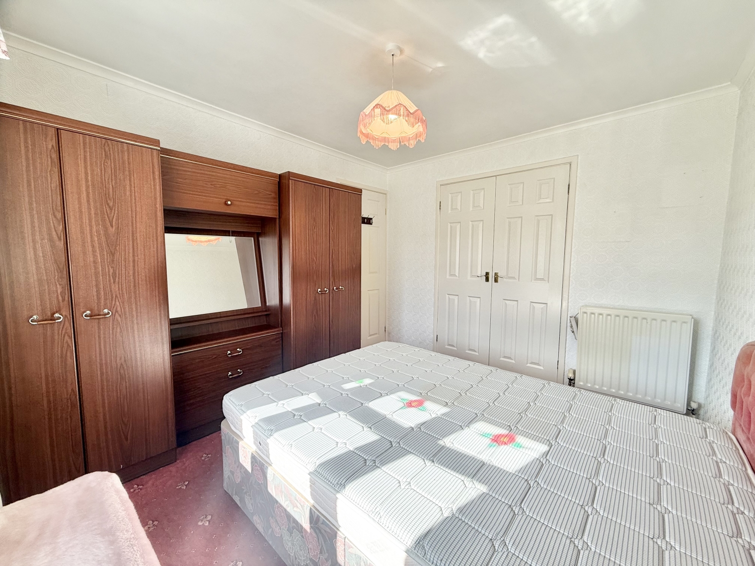 OIRO £169,950Positioned within a quiet and sought‑after cul‑de‑sac, this two‑bedroom terraced bungalow is offered for sale with no onward chain and benefits from a detached garage in a block. The accommodation briefly comprises an entrance hallway with a useful storage cupboard, leading through to a good‑sized lounge featuring a remote‑controlled gas fire installed in 2025. There are two well‑proportioned double bedrooms, a fitted bathroom suite, and a kitchen to the rear with a door providing direct access to the garden. Externally, the property enjoys a fence‑enclosed rear garden, mainly laid to lawn with gated access, offering a private and manageable outdoor space. To the front, there is a further lawned area enhancing the property's kerb appeal. Located within the garage block is a detached garage, suitable for secure parking or additional storage. Further benefits include double glazing and gas central heating throughout. The property is ideally located close to a range of local amenities and excellent transport links, making it well suited to a variety of buyers. Please note that the current vendor is in the process of purchasing the freehold.