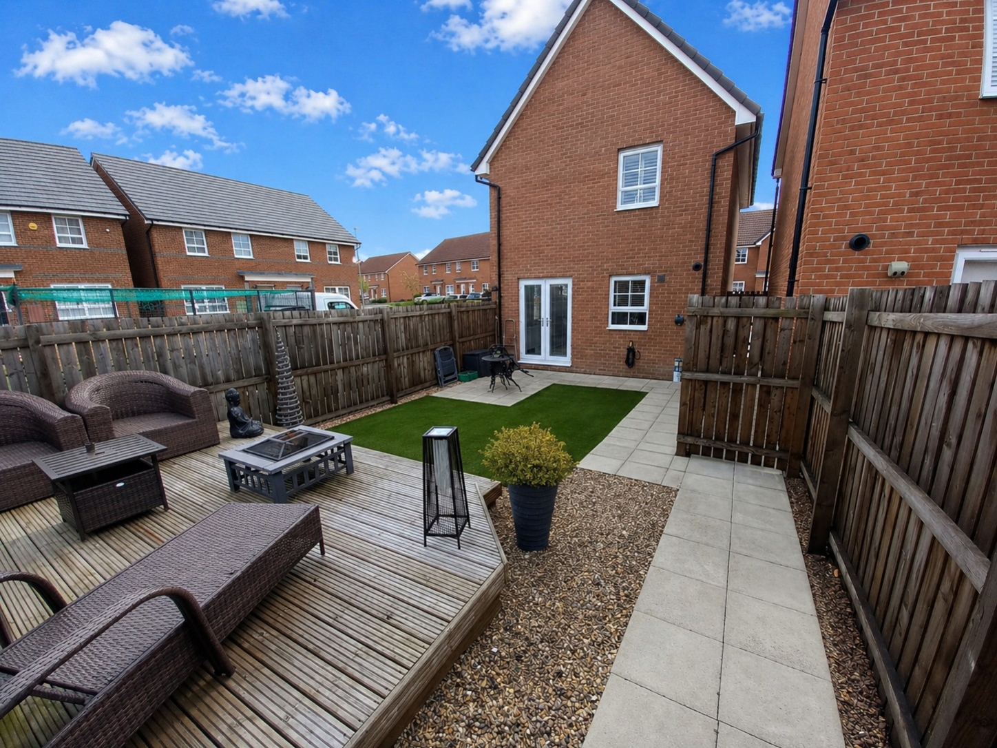 £210,000Superbly Presented Detached Home – Move-In Ready! This beautifully maintained three-bedroom detached property is offered in walk-in condition and finished to a high modern standard throughout. On the ground floor, the property features a welcoming entrance hall, convenient cloakroom/WC, and a stylish lounge complete with a built-in media wall and contemporary electric fire. The heart of the home is the modern dining kitchen, fitted with integrated appliances and designed for both everyday living and entertaining. Upstairs, there are three well-proportioned bedrooms, including a spacious principal bedroom with an en-suite shower room, along with a modern family bathroom. Externally, the property benefits from a beautifully landscaped, fully enclosed rear garden featuring a combination of lawn, decking, and artificial grass for low-maintenance living. Additional enclosed garden space to the front and side is finished with decorative gravel, continuing the low-maintenance theme. Parking is provided via a garage and driveway. Ideally located less than one mile from the town centre, the property also offers excellent transport links to Durham City and the A1(M)/A167 major road networks.